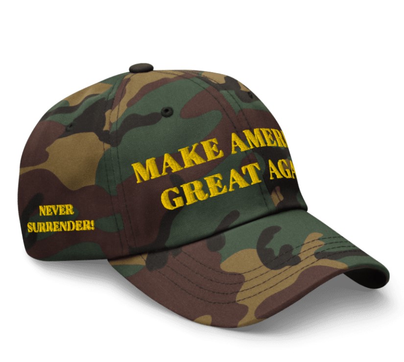 Show your love for America and make a bold statement with our exclusive GOLD DARK MAGA Hat in Green Camo color. Order yours today and let the world know that you stand with the greatest nation on earth!