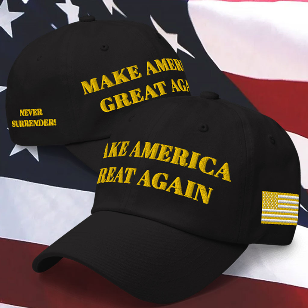 Bold Gold Embroidered Lettering: The striking gold lettering proudly proclaims “MAGA” (Make America Great Again), a timeless slogan that resonates with millions of Americans.