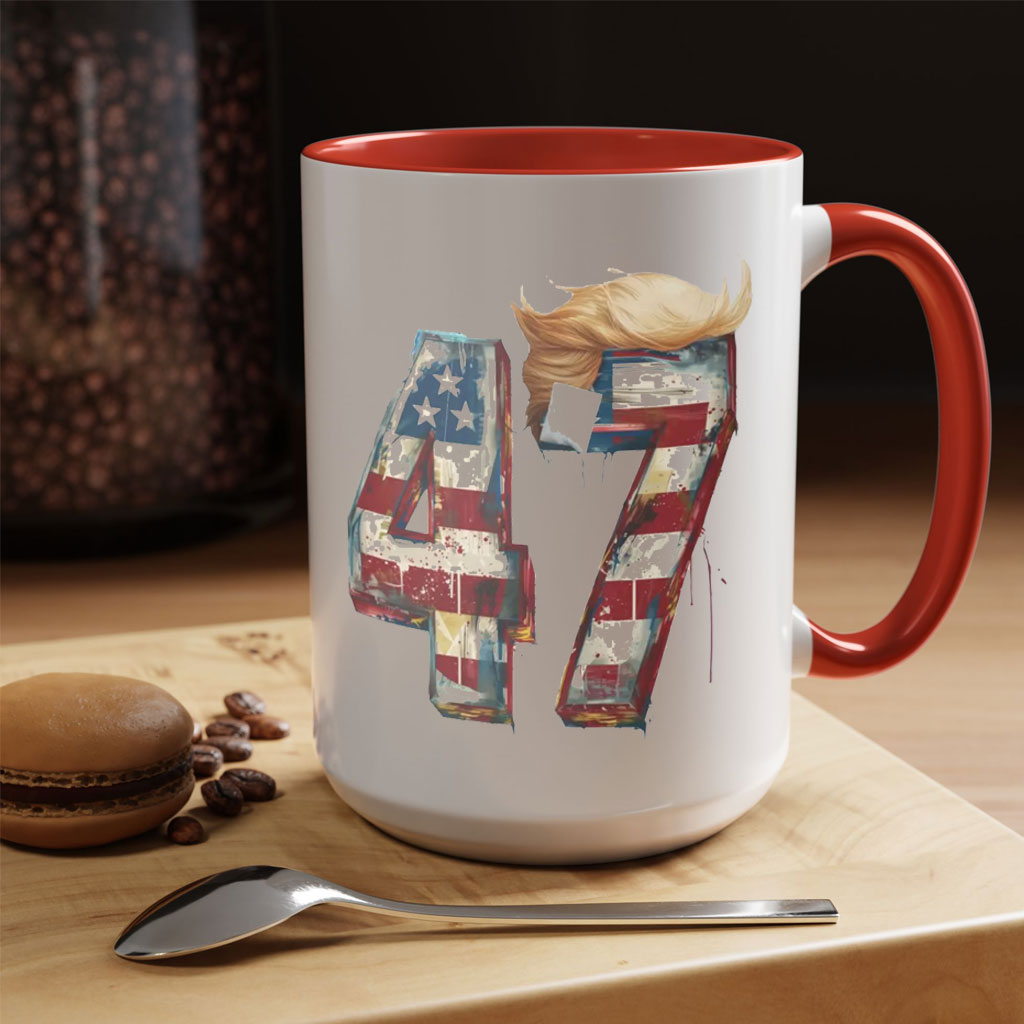 The Trump Hair 47 MAGA Mug is a fun and patriotic tribute to Donald J. Trump as the 47th President of the United States.